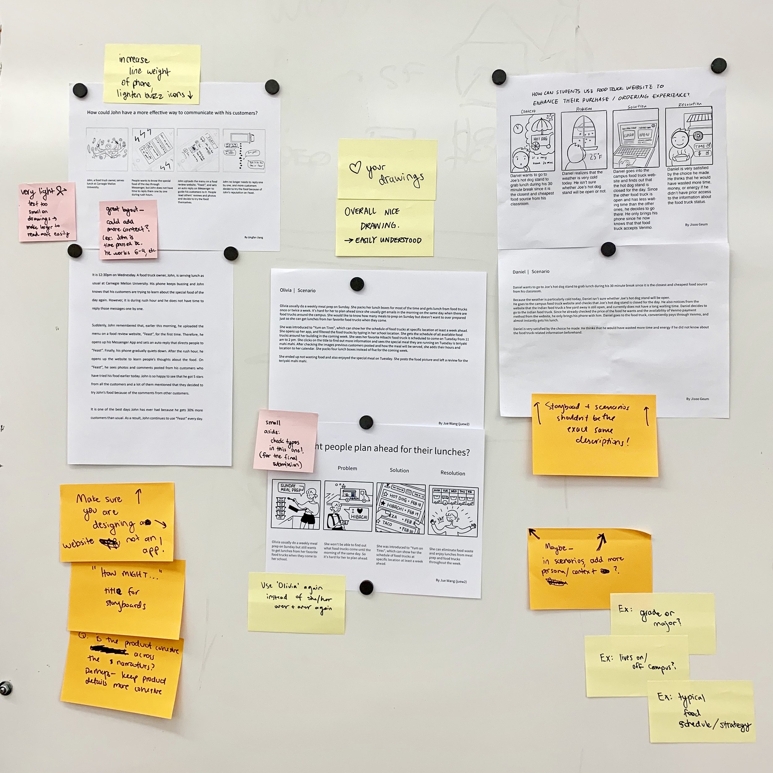 I started the research process by doing fly-on-the-wall observations and interviewing food truck vendors, food truck consumers, as well as the food truck organizer. The main problems discovered were: