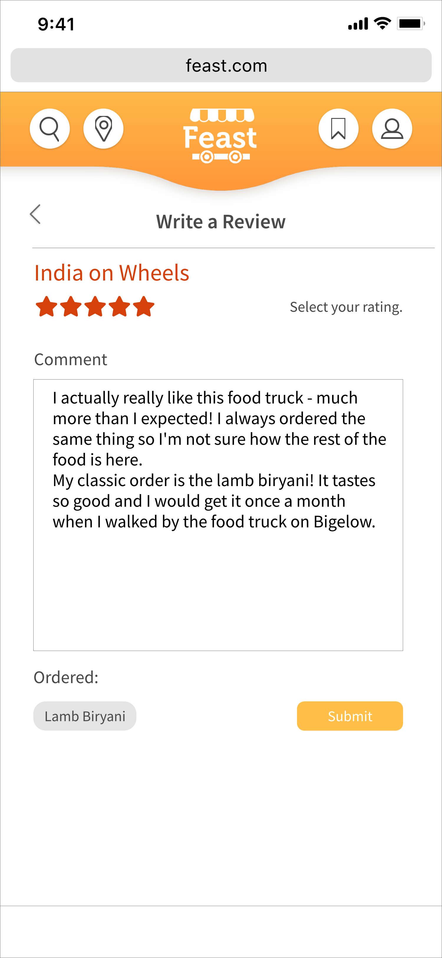Feast.com is a responsive website, aimed to provide service for both the food truck vendors and customers through a platform that allows them to communicate with one another.